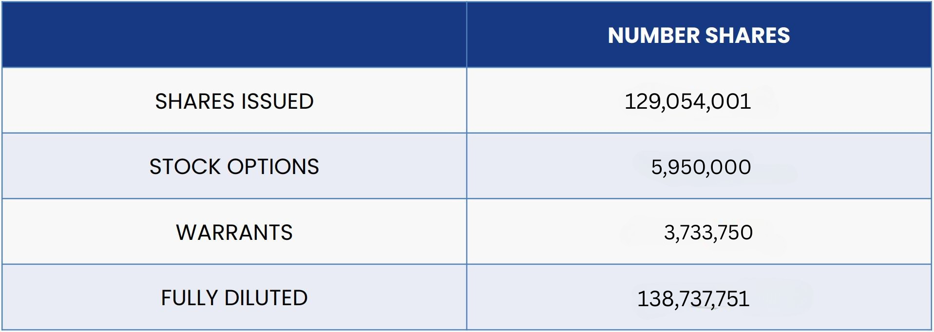 QUEBEC INNOVATIVE MATERIALS CORP. Capital Structure as of  Nov 1st, 2025